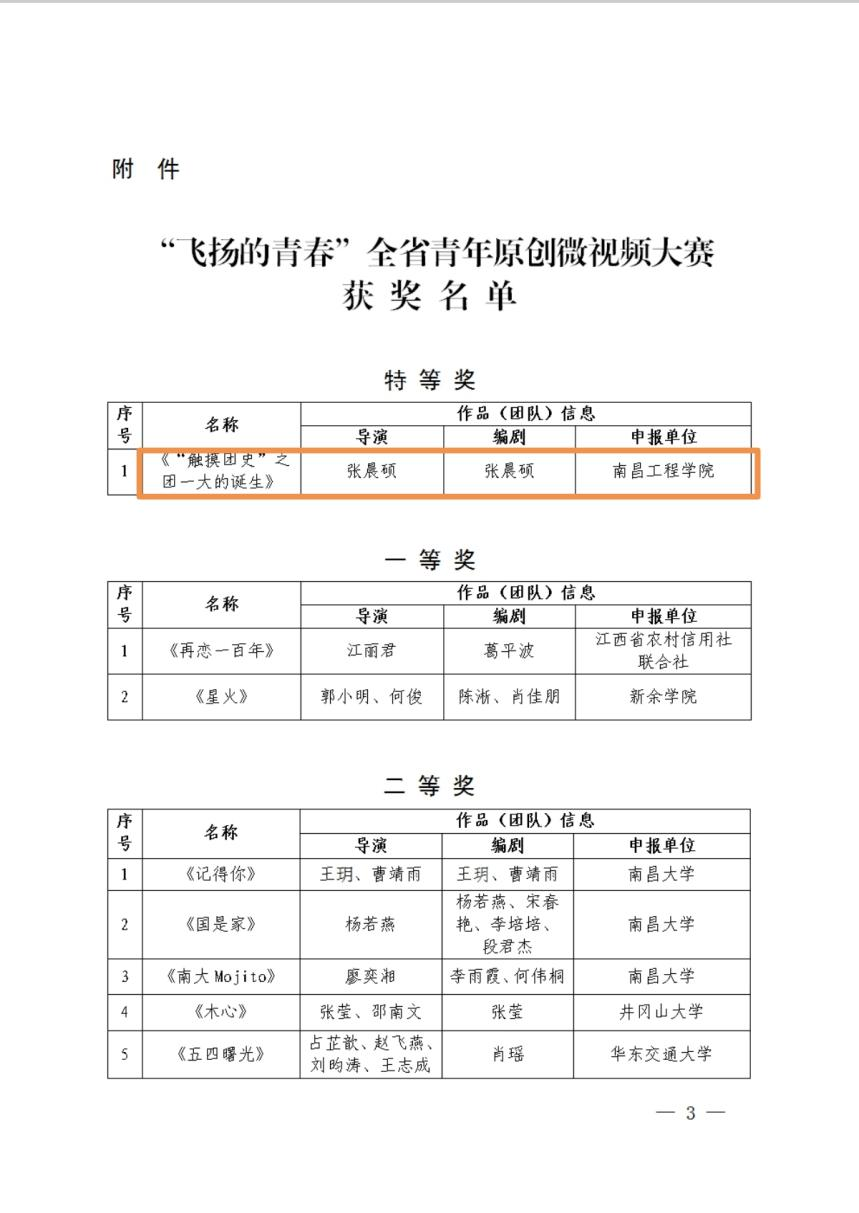 近日,由团省委、省文联和省青联共同举办的“飞扬的青春”全省青年原创微视频大赛结果揭晓,由校团委组织策划的原创微视频《“触摸团史”之团一大的诞生》荣获全省唯一一个特等奖。