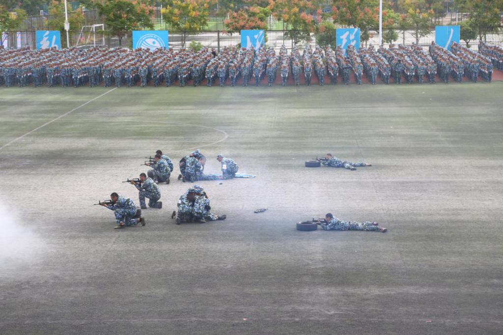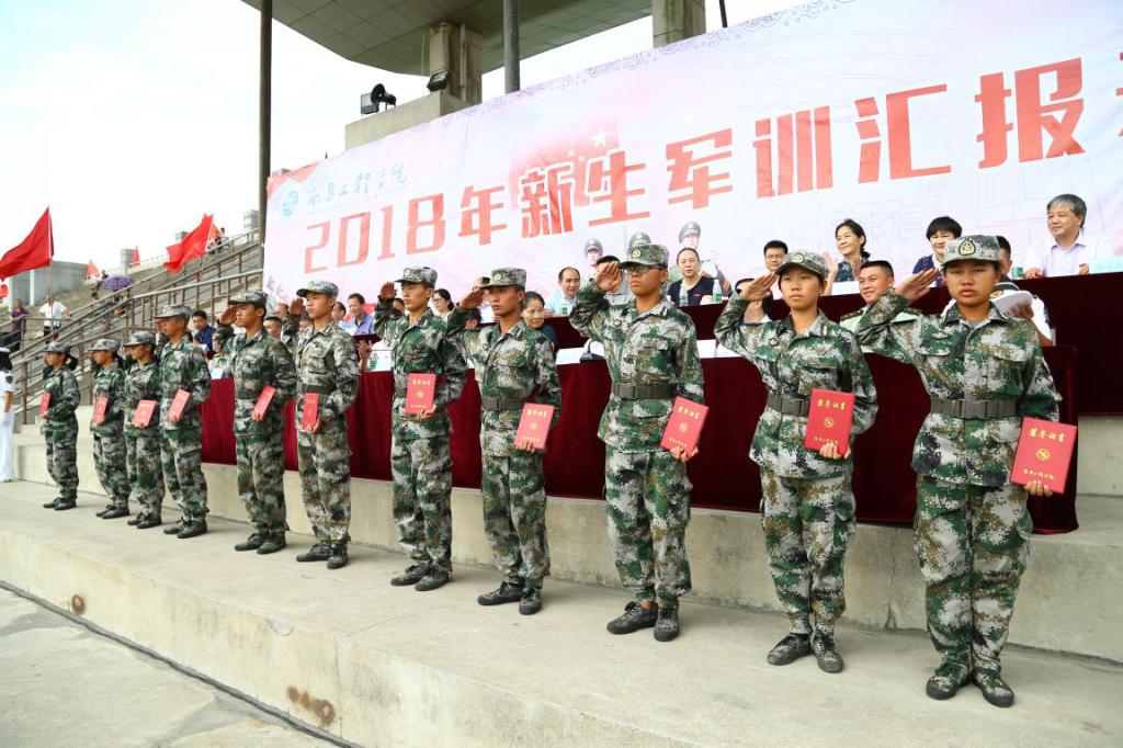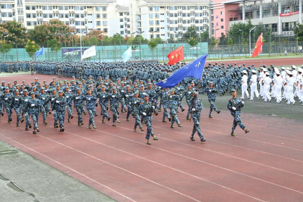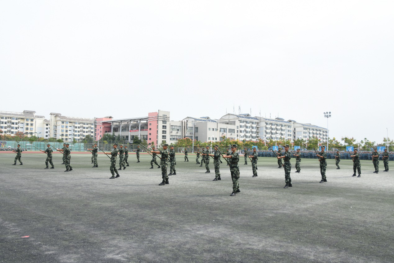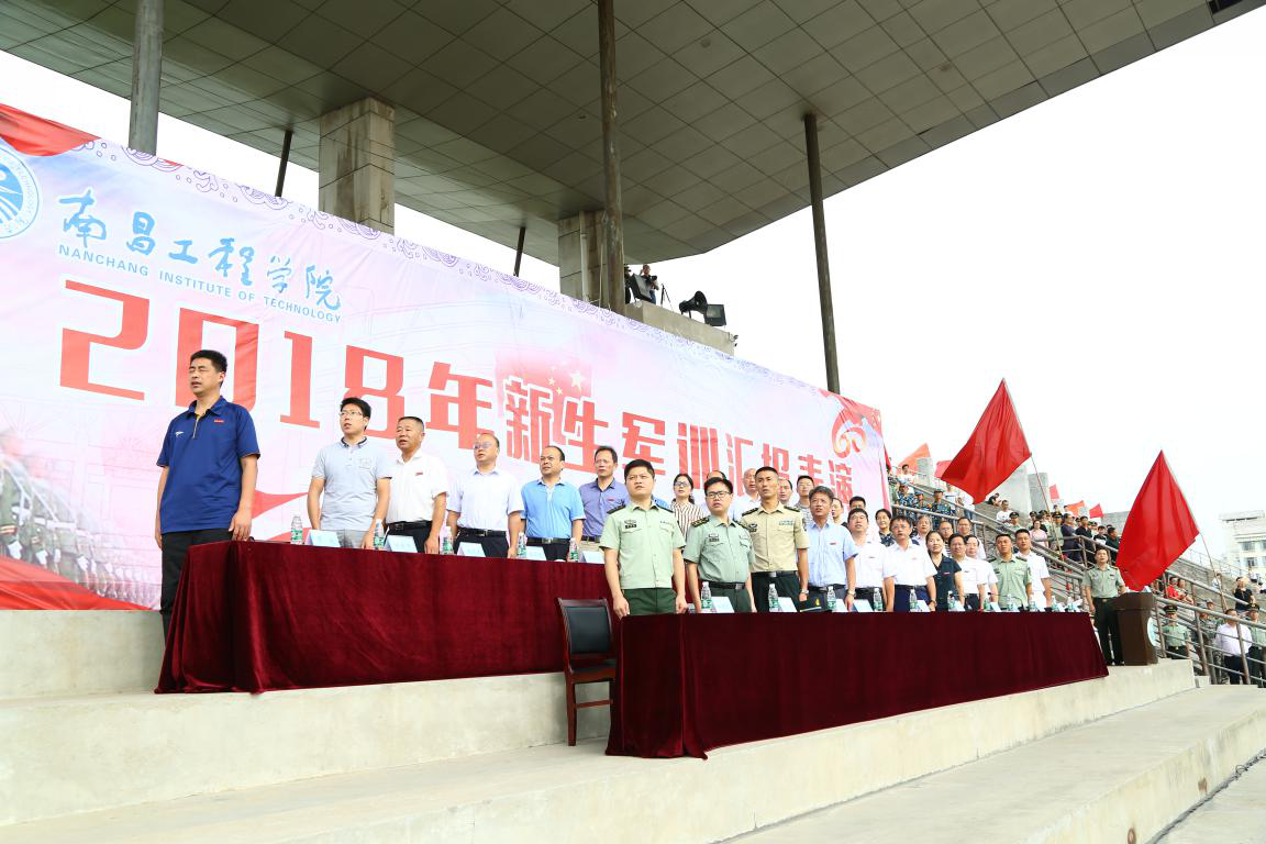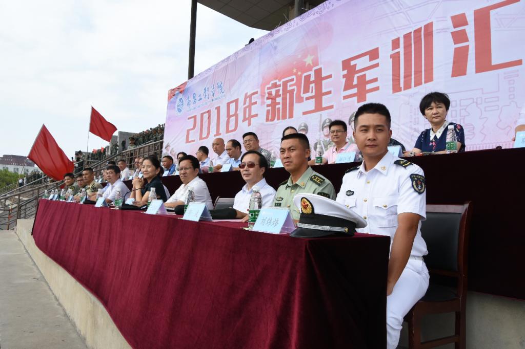 9月25日上午,我校2018级新生军训汇报表演在田径场举行。校长金志农,校纪委书记梁钢,副校长吴泽俊、汪胜前、李明、樊后保,火箭军96882部队参谋长赵晓伟,南昌武警支队副参谋长邓武,青山湖武装部副部长黄小明,海军91676部队士官长刘炜炜等学校和部队领导出席活动,校党委宣传部、团委、人民武装部等部门负责人及各学院党委(总支)书记、2018级全体新生参加活动。汇报表演由士官学院院长(校人武部部长)代海主持。