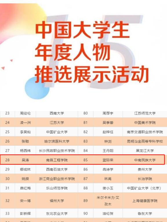据悉,本次活动共遴选出全国大学生年度人物候选人20名、年度人物提名候选人30名、年度人物入围候选人114名。(文/图 吴京颖)