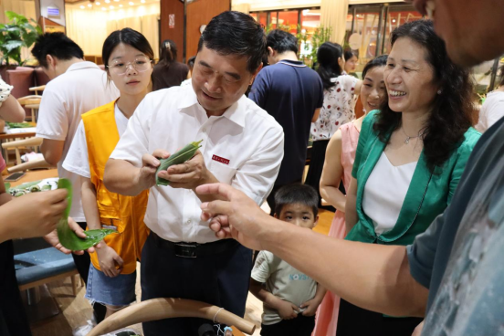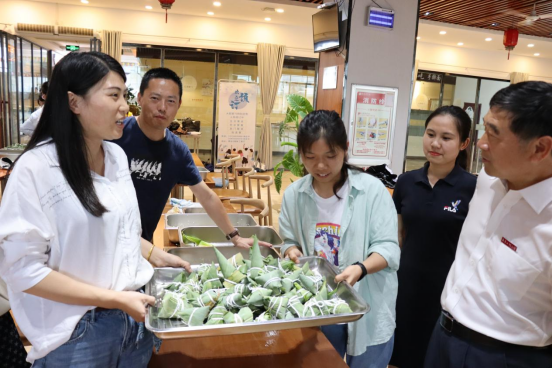 6月10日下午,由校工会主办,后勤保障处承办的“爱心暖端午,粽香感党恩”教职工包粽子比赛在润园教职工餐厅举办,来自各分会的近百名教职工参与活动,校党委副书记吴泽俊和教职工们一起包粽子,面对面交流谈心。
