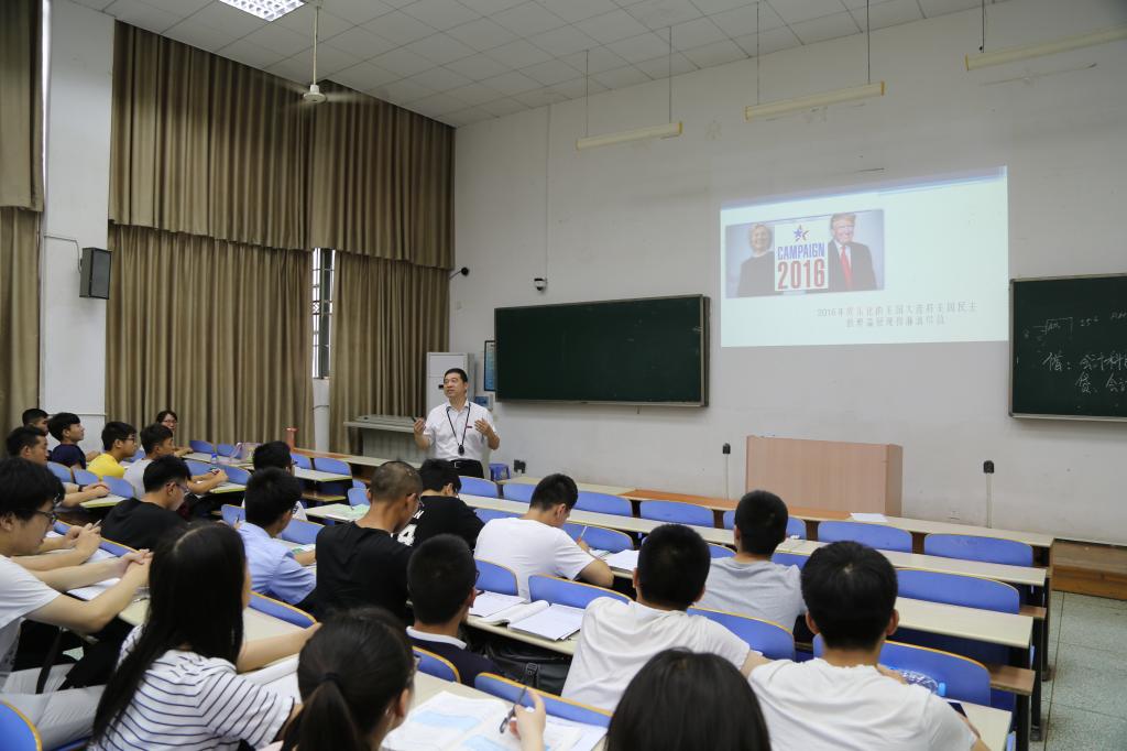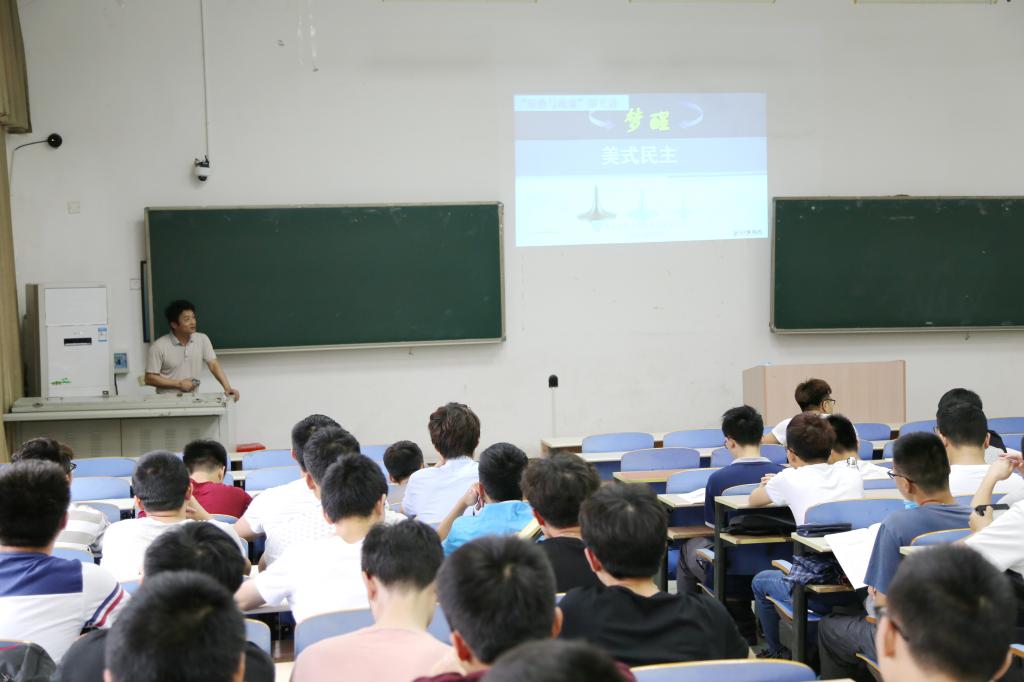 徐兰宾为学生作了题为“梦醒美式民主”专题讲座。他从民主的定义、美式民主的实质、美式民主困境对中国民主发展的启示等方面进行了讲授,通过生动的图片、翔实的数据、具体的案例使学生充分认识了美式民主的双重标准,重点阐述了中国决不能照搬照抄美国式民主,应走自己的路。