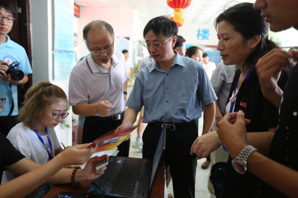8日上午九点,校党委书记刘谟炎,校长金志农,党委副书记张立青,纪委书记梁钢,副校长吴泽俊、李明、樊后保、汪荣有在相关部门负责人的陪同下亲临迎新现场指导工作,慰问辛勤工作在迎新一线的老师和同学们。校领导对大学生活动中心迎新现场的布置表示赞许,详细了解了迎新工作的进展情况,并热情地与新生及家长交流。