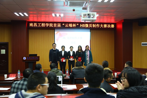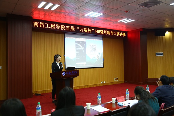 12月21日晚,我校首届“云端杯”H5微页制作大赛决赛在大学生活动中心B100举行。本次大赛由招生就业处和南昌云端网络科技有限公司主办,云端就业工作室承办,学生就业服务中心协办,南昌云端网络科技有限公司领导和我校信息工程学院、人文与艺术学院相关老师应邀担任大赛专家评委。