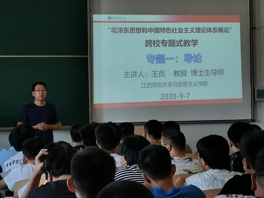 9月7日,马克思主义学院在教学北大楼B504举办《毛泽东思想和中国特色社会主义理论体系概论》(以下简称《概论》)课程跨校专题式合作教学启动仪式。江西师范大学马克思主义学院党委书记、博士生导师王员教授,我校马克思主义学院院长许金华、副院长陈娇云及师生100余人参加启动仪式。