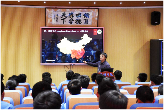 金校长结合自己的研究方向,和同学们分享了30多年科研工作经历。他从对樟树的研究说起,逐步向同学们介绍了樟树研究项目的大方向及进展等内容,并通过10来年不间断的樟树研究历程勉励大家,做科研很苦很累,一定要沉下心来,一定要发自内心的喜欢,要端正态度,要有团队合作精神,要踏踏实实做好每个阶段的事情。他深入浅出、鞭辟入里、妙语连珠的讲解,博得了同学们阵阵掌声。