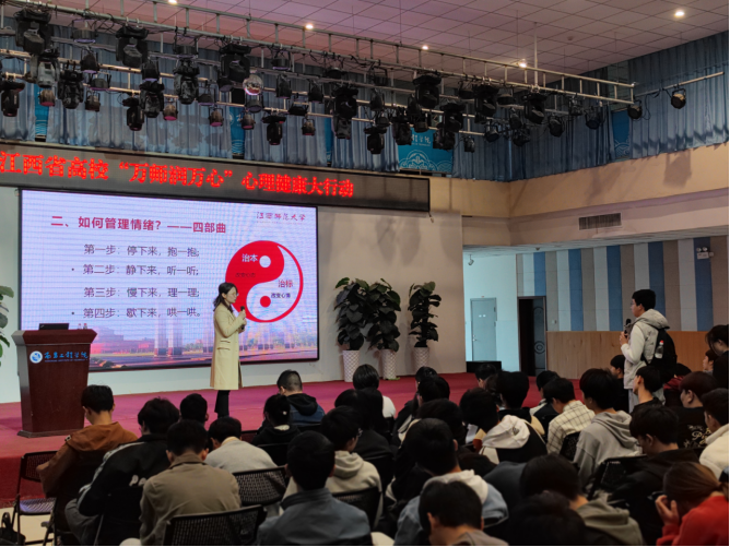 为提升我校师生情绪调节和压力应对能力,3月13日下午,大学生心理健康教育与咨询中心在新时代文明实践中心(大学生活动中心多功能厅)开展“万师润万心”心理健康讲座,江西师范大学心理教育中心副主任李洁教授以“情压管理,幸福人生”为题作分享报告,我校250余名师生参加。