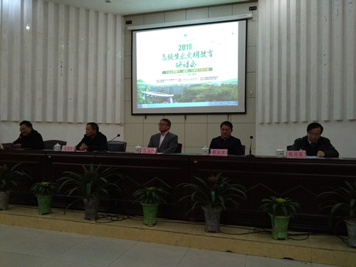 11月24日,应中国高校生态文明教育工作协作组和江西环境工程职业学院邀请,我校樊后保副校长参加了以“生态文明教育(建设)与绿色文化传播”为主题的2016年高校生态文明教育研讨会,并在大会开幕式上致辞。会议邀请了北京大学、复旦大学、首都经贸大学等10余所高校参会,共同交流提升大学生文明素质、引导大学生积极参与生态文明建设的经验和做法。教务处相关负责人陪同参加会议。(文/图 王敏)