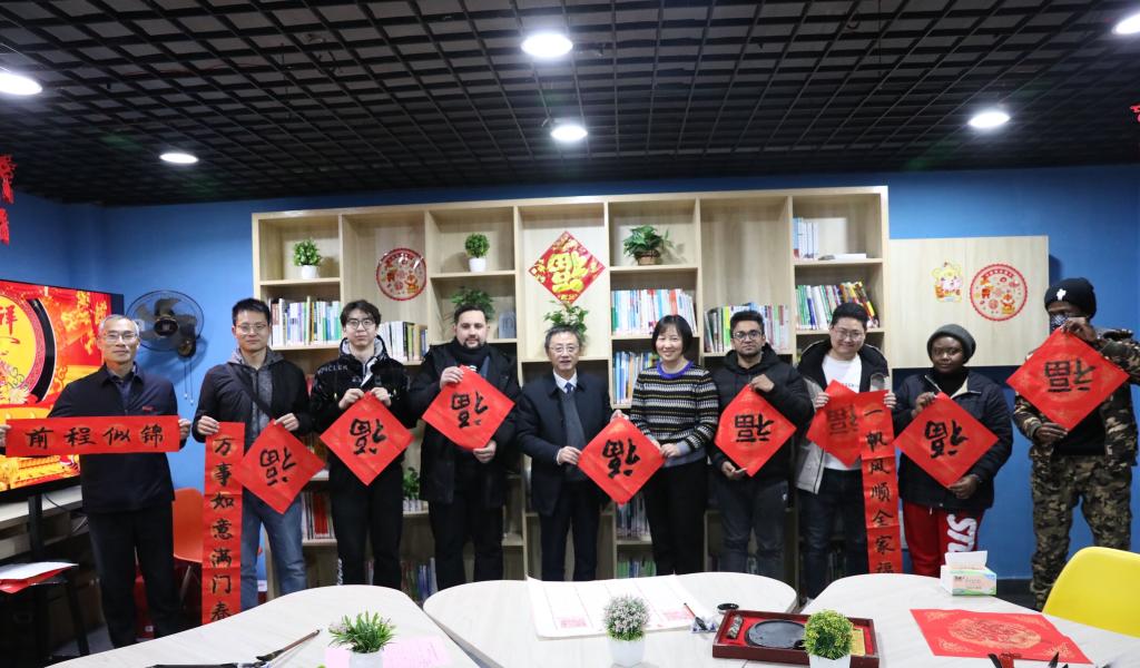 期间,老师们还通过“云端”视频向学生家长代表致以诚挚的问候,为来自不同年级、不同国家的留校同学赠送《习近平与大学生朋友》和慰问品。大家一起写春联、绘福贴,迎接虎年春节,在欢声笑语中表达美好的心情与真心的祝愿。家长们表示,暖心多样的文化活动、细致入微的生活服务让孩子留校如“在家”,感谢学校让孩子在有意义又难忘的氛围中度过春节。