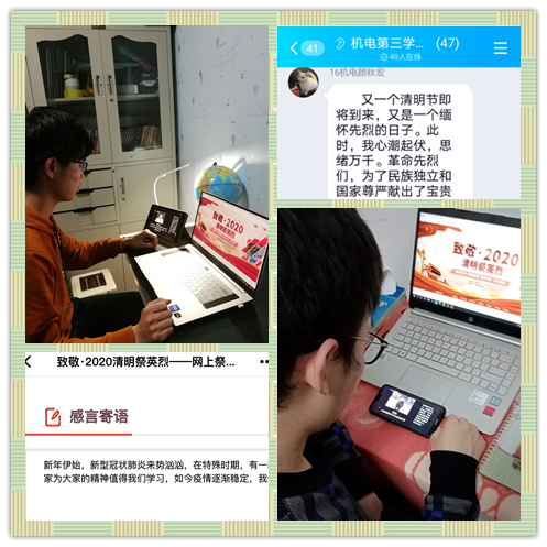 4月1日,机械与电气工程学院各学生党支部纷纷开展清明“指尖祭奠”活动。各学生党支部组织党员观看了“祭奠抗疫牺牲英烈”视频,对2020年年初因抗击新冠肺炎疫情牺牲的医生、民警、公务员、社区干部进行了深切缅怀,并登录中华英烈网进行网络献花、点烛,抒写寄语,寄托哀思,表达对英烈的感恩和敬仰之情。