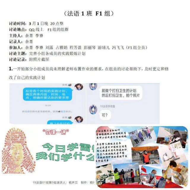 《概论》课实践教学以小组形式进行,各组分工合作,开展主题讨论、查找资料、制作小组PPT,最后由小组代表在课堂上轮流利用群视频直播方式展示本组成果。同时,各小组每个学生都要进行独立思索,必须在规定时间内,查找“抗疫英雄”事迹,融入个人思考,用纸笔写下心目中的“抗疫英雄”,并抒发对他们的感恩、敬佩、景仰之情。“每个学生对中国战‘疫’制度的认识角度、程度可能不一样,通过沟通交流可以激起思想火花,从而对当下国情产生更深刻的认识。”陈红说道。
