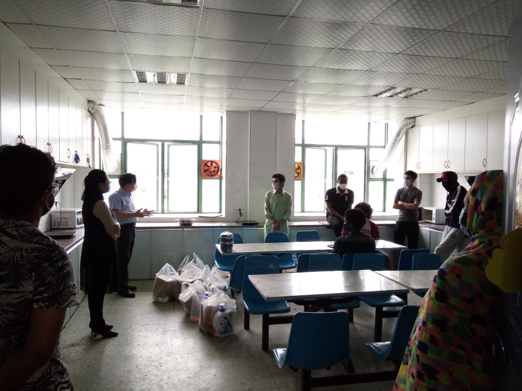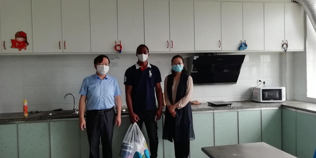 5月6日下午,副校长樊后保在国际交流与合作处相关人员的陪同下,看望慰问了我校在校来华留学生。樊后保与在校14名留学生亲切谈心,向留学生解释我校的防疫政策,叮嘱留学生们继续做好安全防护,并介绍了学校正式开学复课后留学生们须注意的事项。他还详细了解了在校留学生们的线上学习状况,关心他们的购物、用餐和体育锻炼等情况,并向留学生发放防疫物品。(文/图 何安平)