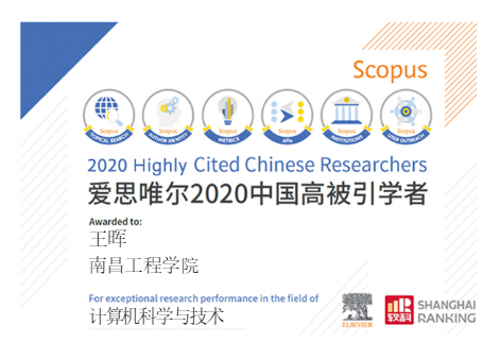 4月22日,爱思唯尔(Elsevier)发布了2020年中国高被引学者(Highly Cited Chinese Researchers)榜单,我校信息工程学院王晖教授在计算机科学与技术学科领域进入中国高被引学者榜单,这是我校教师首次入选该榜单。
