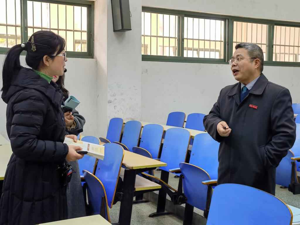 人文与艺术学院领导班子成员陪同听课。(文图/王丹 责任编辑周冠佳 潘旭)
