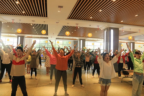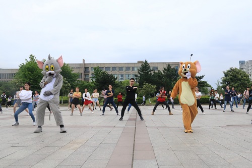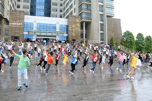5月4日上午,由校团委主办、人文与艺术学院团委承办、大学生艺术团协办的“青汇”快闪活动分时段在图书馆门前、一食堂、三食堂进行。欢快的音符、美妙的歌声、动感的舞蹈吸引了路过师生驻足观看。
