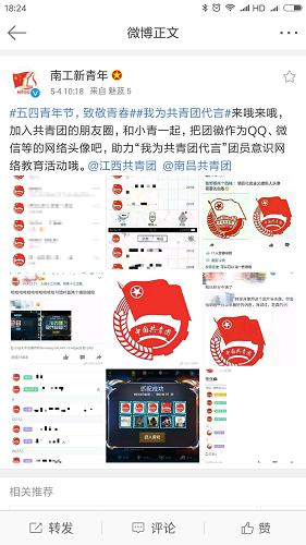 为加强团员意识教育,增强团员青年的使命感、责任感和光荣感,校团委还于5月4日向全校团员青年发出了“我为共青团代言”的团员意识网络教育活动倡议,号召学校团员青年在五四当天用团徽作为QQ、微信等网络头像。号召一经发出,得到了团员青年的广泛参与。