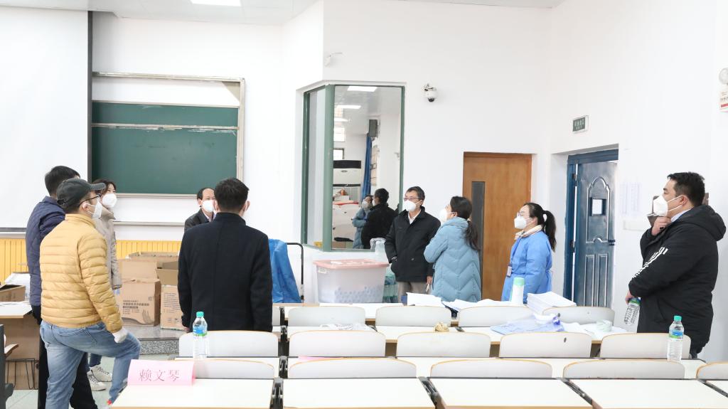 考试期间,校党委书记金志农,校长汪胜前,校党委副书记吴泽俊,纪委书记殷安全,副校长周敏丹、陆伟锋等校领导深入考场一线,到特殊考场、视频监控室、考务办等检查疫情防控和巡视指导组考工作,慰问保障研招考试顺利进行的考试工作人员。