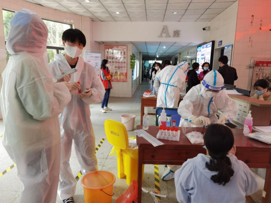 在志愿者们的带领下,学生片核酸检测工作得以高效有序地进行,为学校疫情防控作出了重要贡献。