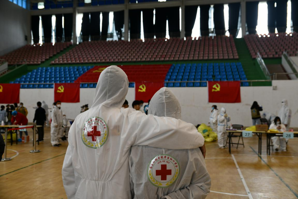 经历了第一次核酸检测后,红十字会、教官队、各楼栋、应急救援队及时召开了总结会,大家梳理了排队秩序和管理安排中的问题,改进了工作方案。此后,在每一个楼栋设置两个核酸检测点,分别负责A座和B座。志愿者们分成三部分:运输组、供应组和扫码组。