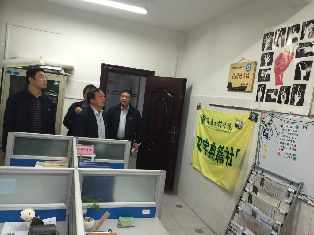 4月16日,校党委副书记张立青在党委宣传部、团委及教务处负责人的陪同下,来到校青年社团文化园进行调研。
