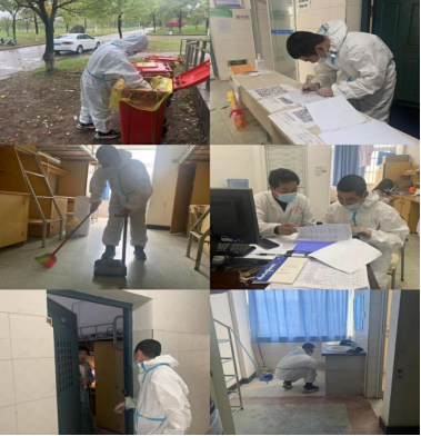 为入住观察的学生登记和测量体温、第一时间安排核酸检测、打扫消杀每个观察区宿舍、配合医护人员各项工作、及时清理观察区用餐垃圾,时刻关注宿舍水电情况……这些工作排满了杨洋的日程表,从早到晚的忙碌是常态。他严格按照疫情防控各项要求,把服务学生健康的理念放在首位,高质量地完成所有工作。