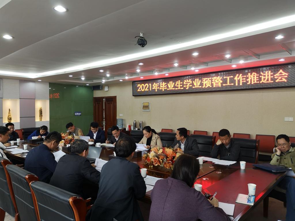 4月2日下午,学校在行政楼336会议室召开2021年春季学期学业预警工作推进会议,校领导汪胜前、周敏丹出席会议并讲话,教务处、学工处和团委负责人,毕业生所属学院院长,体育教学部负责人参加会议。