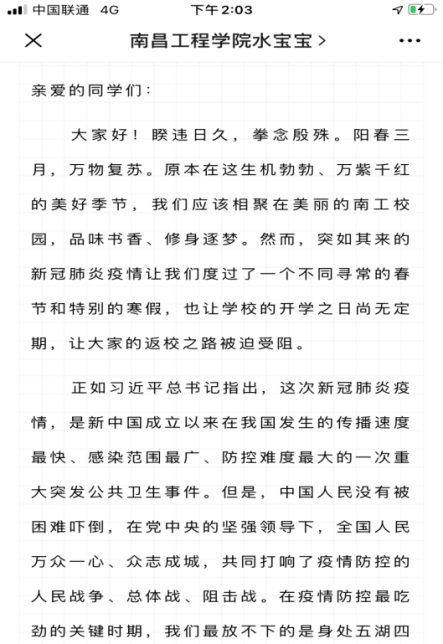 从疫情发生以来,我还看见了中央及地方政府、全国各地的爱心人士以及学校对湖北的支持和关心。不仅仅是从新闻播报、微博头条中看到,更多的是从湖北人的真实生活中发现的。