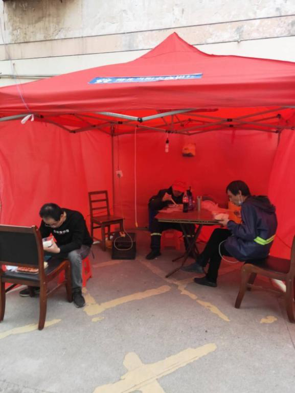 我看见了寒风中依旧坚守岗位的小区防疫志愿者。在一次为老人送物资的路上,一个画面深深地印在我的脑海里。那时已是傍晚时分,小区门口被风吹得颤颤巍巍的红棚子里隐约能看见些许微光,3个防疫志愿者正手捧着盒饭,围在取暖的小太阳旁狼吞虎咽地吃着。那“狼狈”的吃相一点也不同于白天耐心劝诫居民的他们。那一刻我感觉那简陋的红棚子特别明亮。他们就好像太阳,照耀着、温暖着居住在社区的我们。