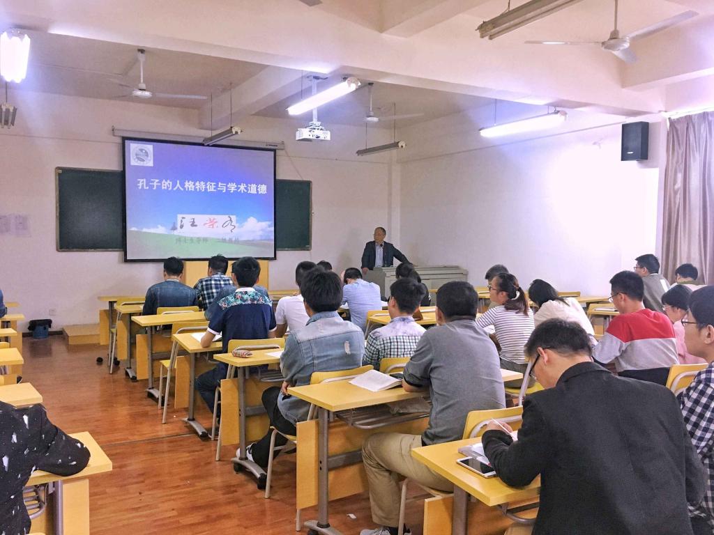 5月4日下午,我校研究生学术大讲堂在逸夫楼A302教室开讲。研究生处为积极贯彻《关于加强和改进新形势下高校思想政治工作的意见》精神,加强科学精神和工程伦理教育,推进科研诚信和学术道德建设,邀请了副校长、博士生导师汪荣有教授作了题为《孔子的人格特征与学术道德》学术报告。研究生处党总支副书记陈继宇主持了报告会。研究生处部分教师和2016级研究生聆听了报告。