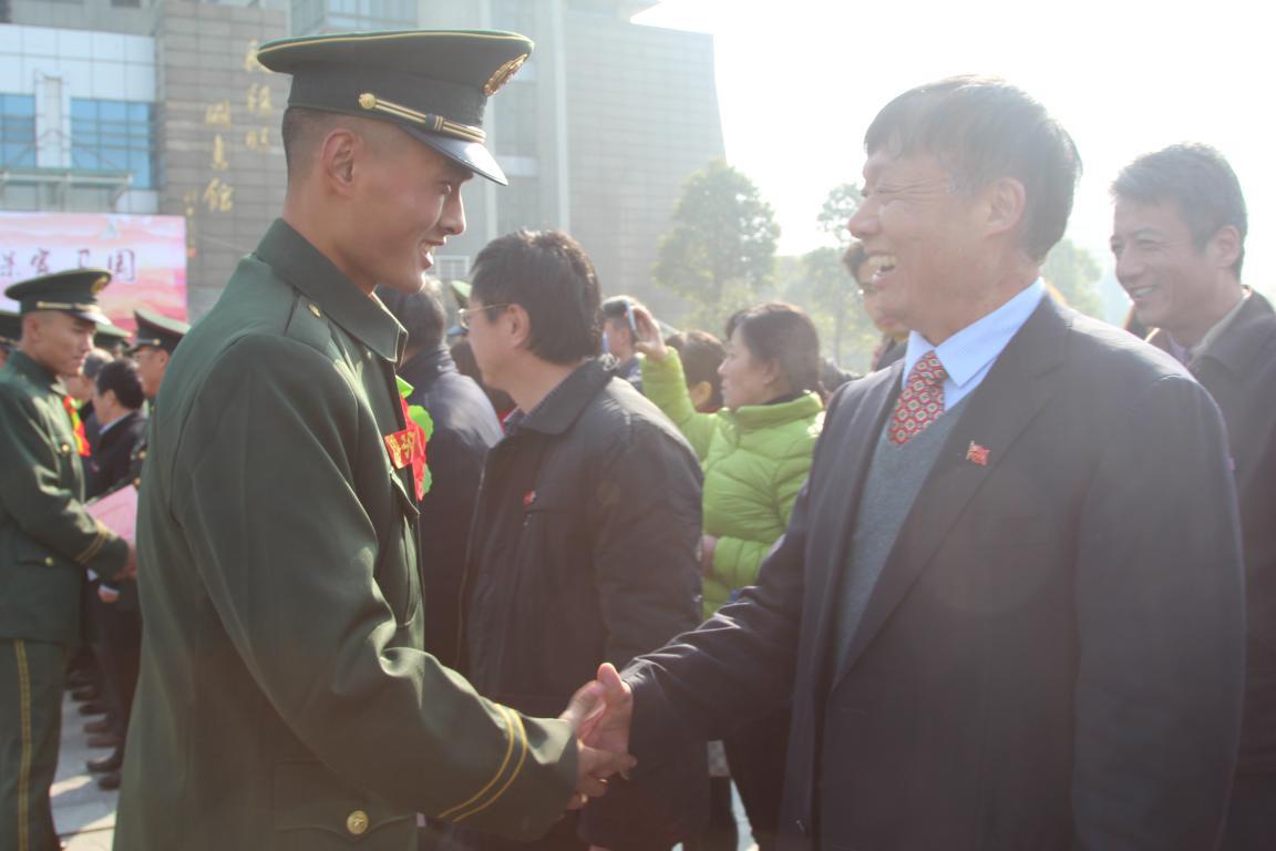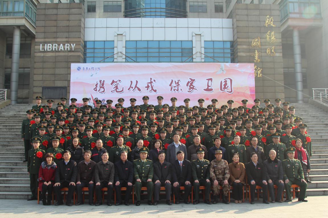 入伍仪式结束后,校党委书记刘谟炎同与会领导及士官生合影留念,并与入伍士官生一一握手送别,期望2014级士官生在新的征程上,早创佳绩、早传捷报。(军事教育学院供稿)