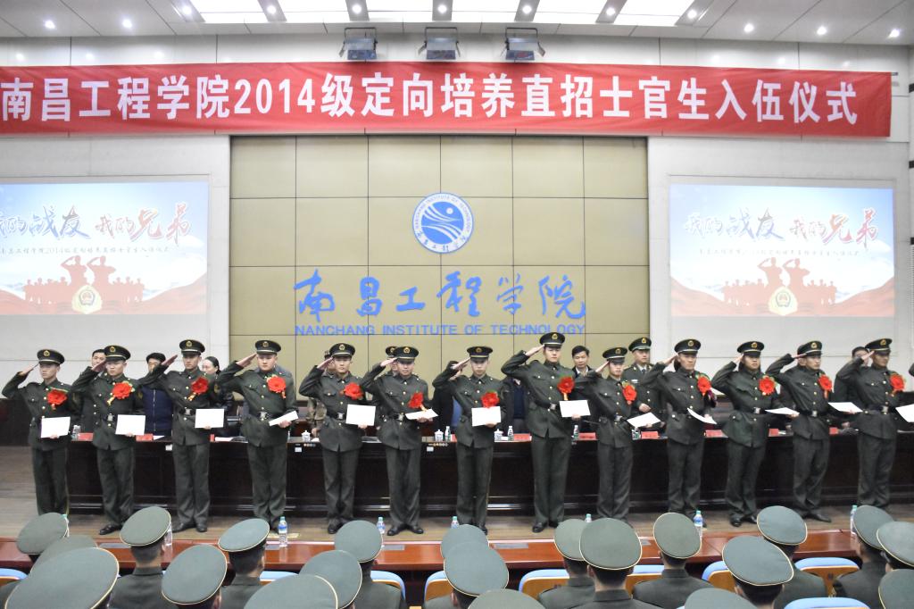 入伍仪式上,李细平部长宣读了南昌工程学院2014级定向培养直招士官生入伍名单;与会领导为2014级124名士官生颁发应征公民入伍通知书;2014级士官生代表张艺、士官生家长代表易会容也分别发言。