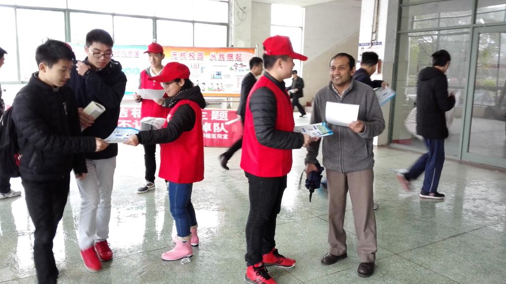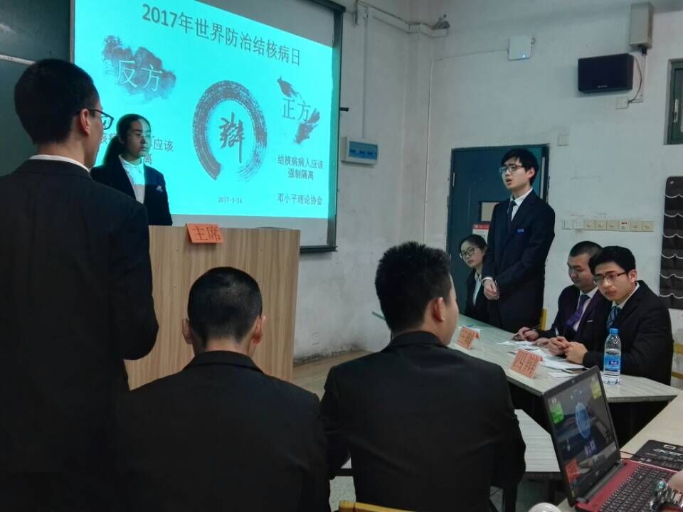 中午,校医院医护人员及校学生红十字会会员在一食堂门前,向师生发放结核病防治宣传单500余份;晚上,校学生红十字会联合学生邓小平理论协会,在教学北楼B102室举办了以“结核病病人是否应该强制隔离”为辩题的辩论赛,正反双方从医学、法律、人道、心理等方面展开了激烈的辩论。