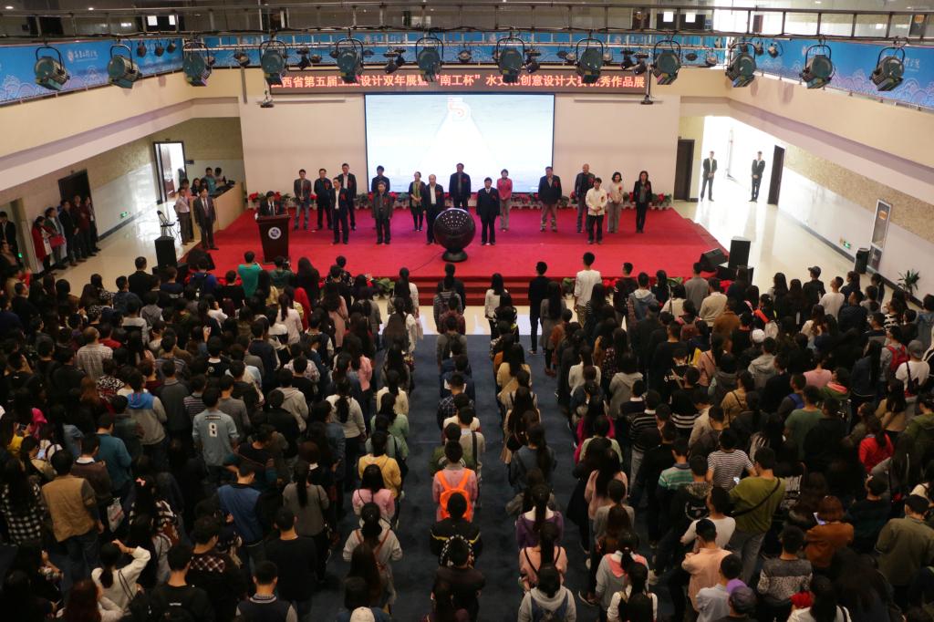 11月6日,江西省第五届工业设计双年展暨“南工杯”水文化创意设计大赛优秀作品展开幕式在我校大学生活动中心多功能厅举行。校党委书记刘谟炎宣布开幕,校长金志农致欢迎词,江西省水利厅副厅长吴义泉致开幕词,江西省文化厅副厅长郎道先、江西省知识产权局副局长李岭、江西省美术家协会副主席熊建新及各高校的师生代表参加活动。本次活动由我校副校长樊后保教授主持。