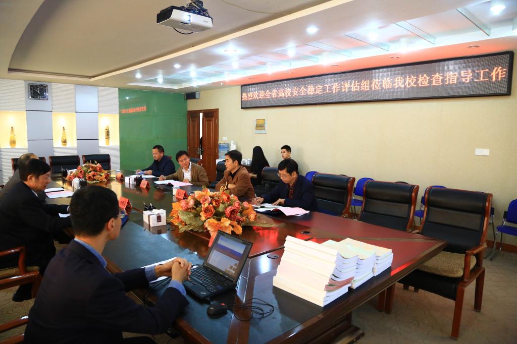 汪荣有就我校安全稳定特色工作进行了重点介绍。保卫处长阎成瑜从主要措施、主要成效、存在的主要问题三个方面向评估组汇报了我校的安全稳定工作。