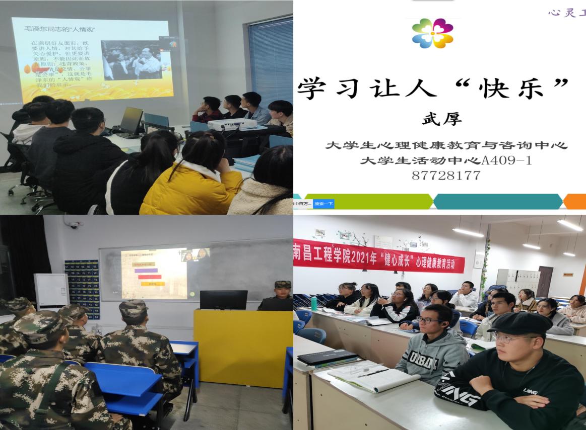 开展线上心理健康知识讲座。11月8日-11日,心理中心根据防疫要求,采用线上教学的方式分层分级开展了四场不同主题的心理健康知识讲座,分别涉及“人际相处”“学习”“恋爱”“生命的意义”等主题,满足学生个性化心理知识需求。