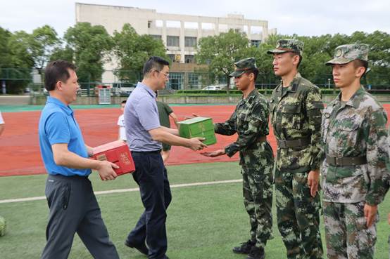 陆伟锋代表学校对集训师生主动放弃暑假休息,冒着酷暑积极备赛表示感谢和慰问,送上了冰红茶、西瓜等慰问品。他强调,学校代表江西省参加全国军事课教学展示,任务艰巨、使命光荣,希望大家高度重视、克服困难、科学训练,争取取得优异成绩,要劳逸结合、注意休息、保护身体,以最好的状态进行训练和比赛。