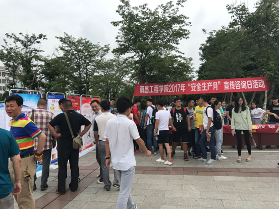 校保卫部(处)、团委、学工部(处)、设备与实验室管理处、医院、土木与建筑工程学院、机械与电气工程学院、信息工程学院、人文与艺术学院等单位在活动现场联合设立了宣传咨询台,设置了消防安全、食品卫生安全、危化品安全、交通安全、网络借贷安全等方面的宣传展板,综合利用安全知识展板、现场签名、发放宣传单等多种形式向广大师生员工开展安全宣传教育,1000余名师生员工到场参观咨询。