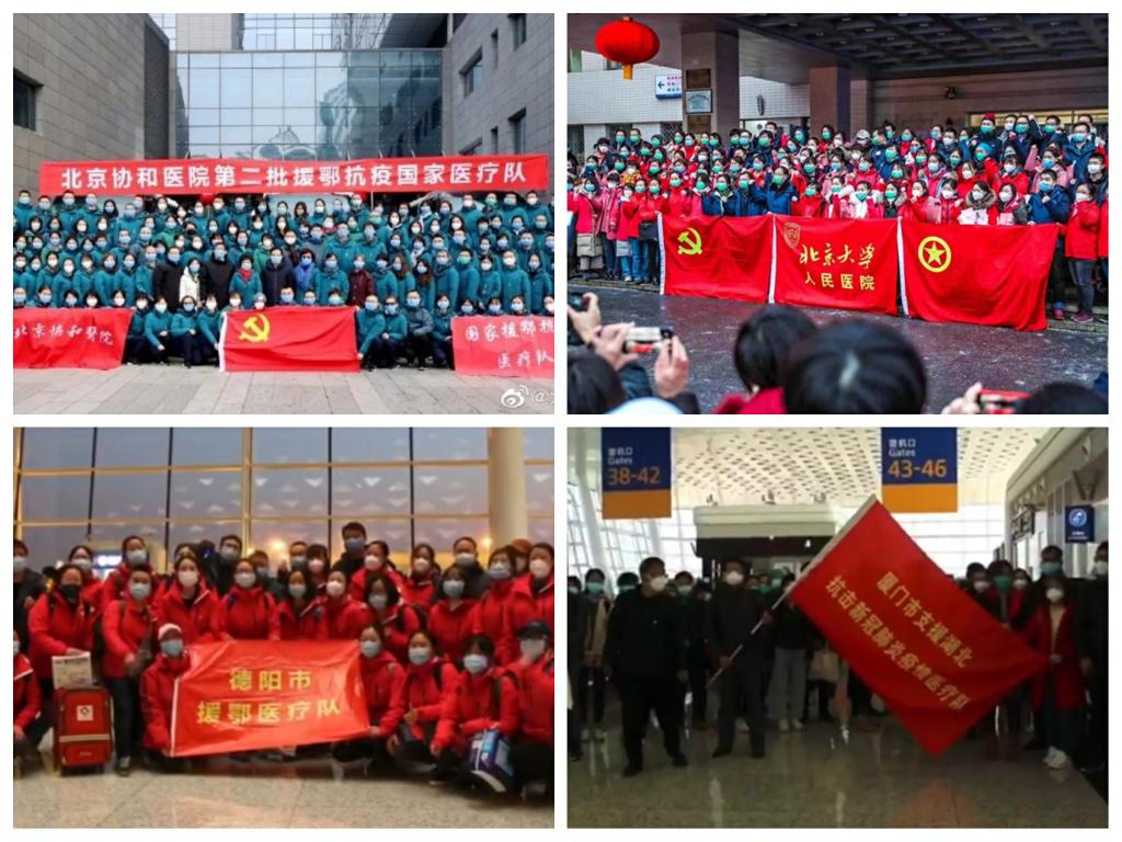 全国29个省区市和新疆生产建设兵团、军队系统先后共派出4万多名医护人员驰援湖北和武汉,第一时间投入战斗;