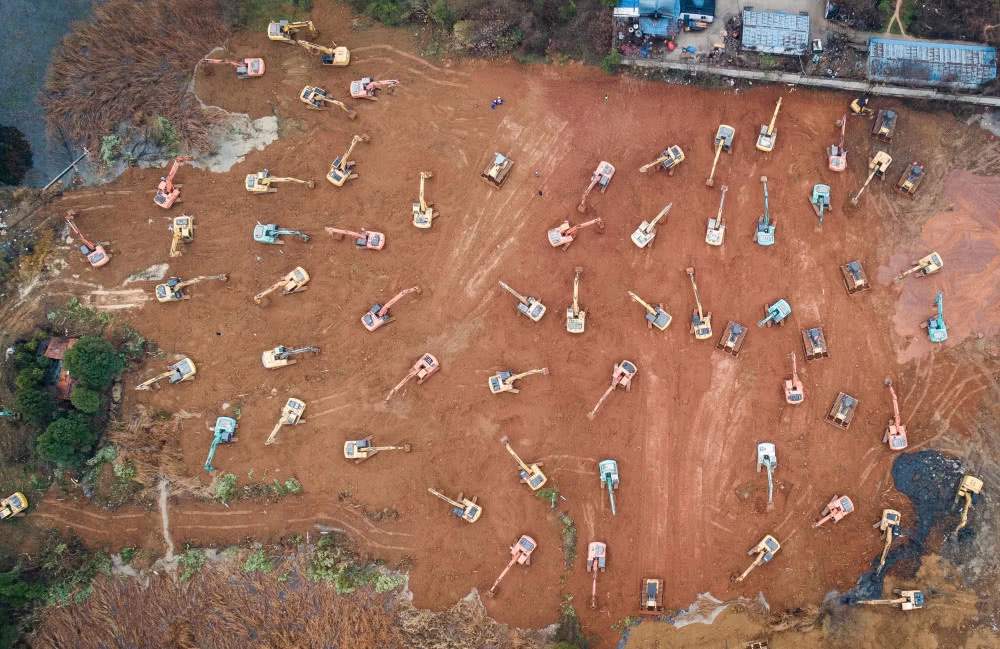中建三局从武汉市5个建设项目调集1400多名工人,急如星火,3.4万平米1000多个床位的火神山传染病医院10天内建成;