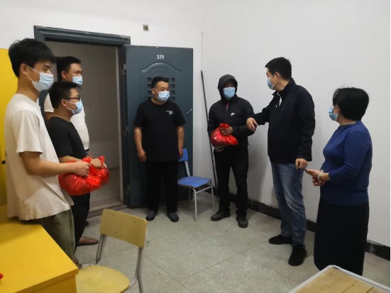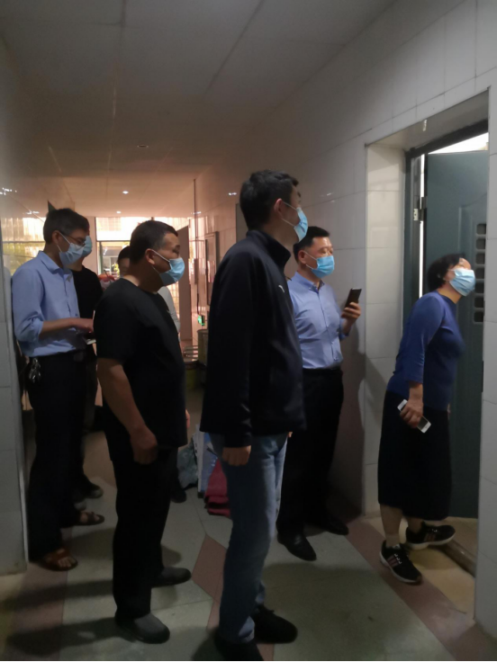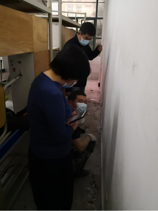 4月26日晚,副校长李培生带领后勤保障处相关人员,现场督导学生公寓维修施工,看望慰问连夜加班的维修工人。