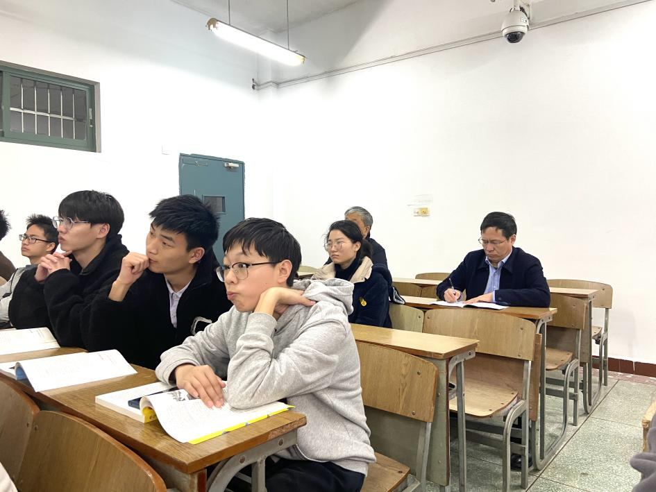 课堂讲授了“习近平新时代中国特色社会主义思想是中华文化和中国精神的时代精华”章节内容。听课过程中,汪胜前认真记录,重点关注教学方法、教学效果等情况,并于课后与黎欣就教学方式方法、案例选取等方面进行了交流,要求任课教师在授课过程中,把道理讲深、讲透,不断推进思政课改革创新,进一步筑牢大学生的信仰根基。(文图/江玮瑶 责任编辑 潘旭 陈巧雄)