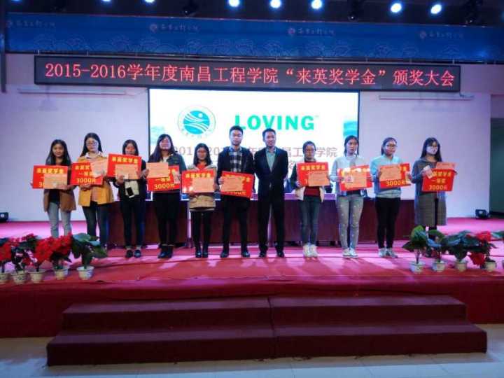 11月1日,南昌工程学院2015-2016学年度“来英奖学金”颁奖大会在大学生活动中心顺利举行。来英教育董事局主席冀瑞鹏校友,学工处、外国语学院负责人和“来英奖学金”获得者以及300余名学生代表参加了活动。