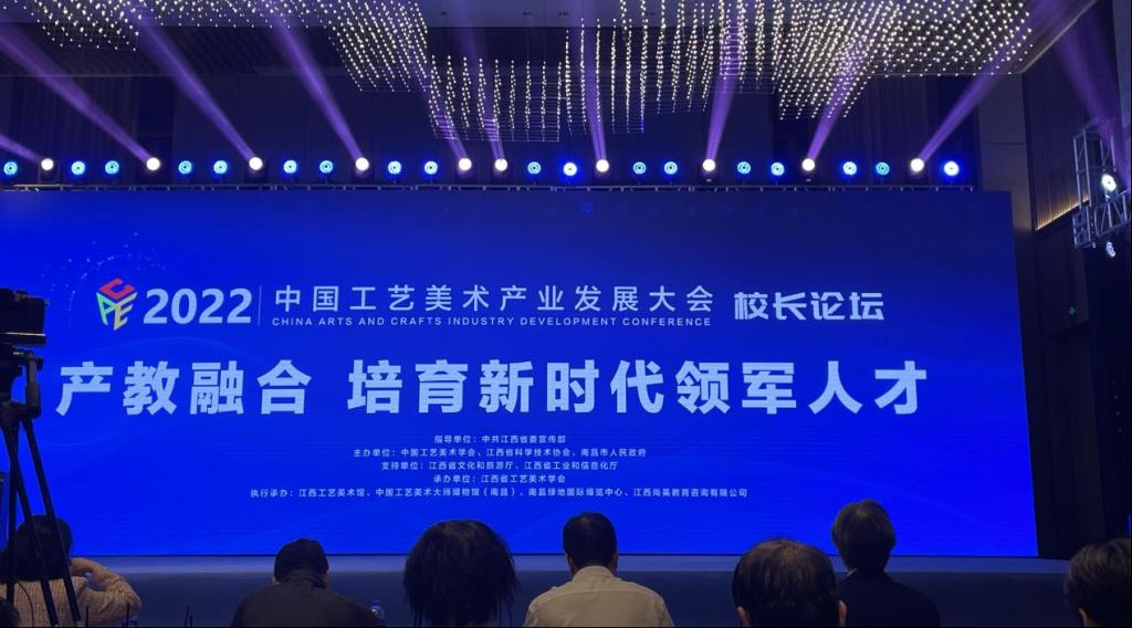11月3日至6日,由中国工艺美术学会、江西省科协、南昌市人民政府联合举办的“2022中国工艺美术产业发展大会”在南昌市绿地国际博览中心召开。校长汪胜前代表学校参加校长论坛学术活动,校纪委书记殷安全参观了展览。人文与艺术学院20件师生作品参加大会主办的全国工艺美术成果展及“中鼎杯”工艺美术艺术与设计大赛。