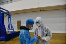 欧阳宇轩第一次穿上雪白的防护服时,便感受到了一丝压力。虽然他穿的是一级防护服,没有二级防护服那样密不透风,但在各点之间运送物资、搬运物资时,还是很不方便。工作仅开始一个小时他就已经汗流浃背了,口罩也让人喘不过气来,时间一久就会因为缺氧而感到头昏眼花。就这样,欧阳宇轩奔波于各采集点,忙碌了整整一个上午。等所有同学都完成了检测,他才有时间脱下防护服做检测。