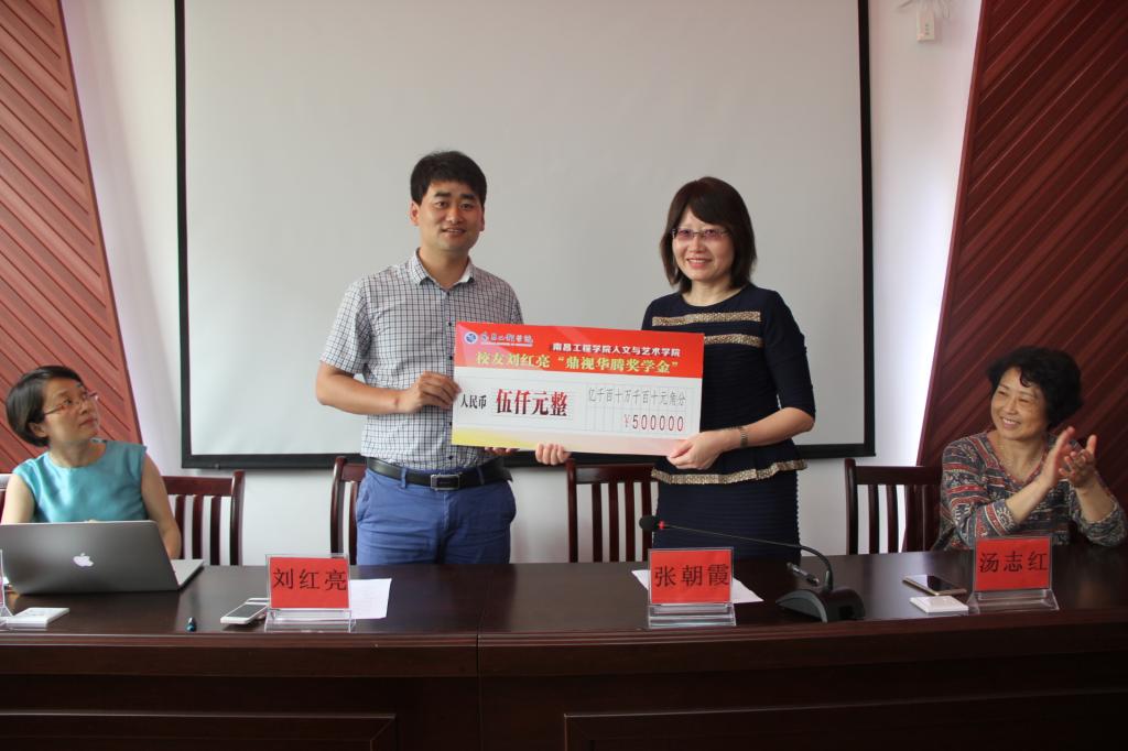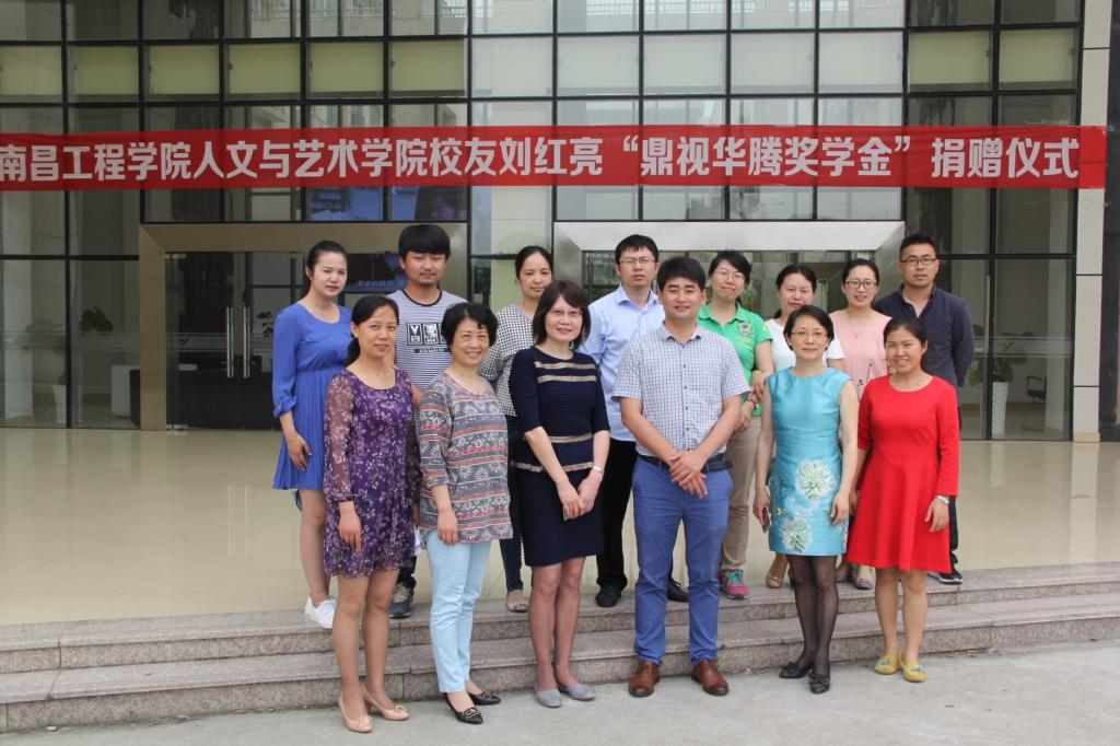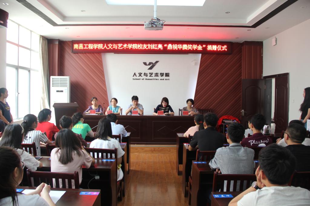 5月11日下午,南昌工程学院人文与艺术学院2006级新闻采编与制作专业校友刘红亮设立的“鼎视华腾奖学金”捐赠仪式在艺术楼A230举行。江西鼎视华腾影视文化有限公司总经理刘红亮,人文与艺术学院负责人、传媒类专业教研室主任及学生80余人参加了捐赠仪式。