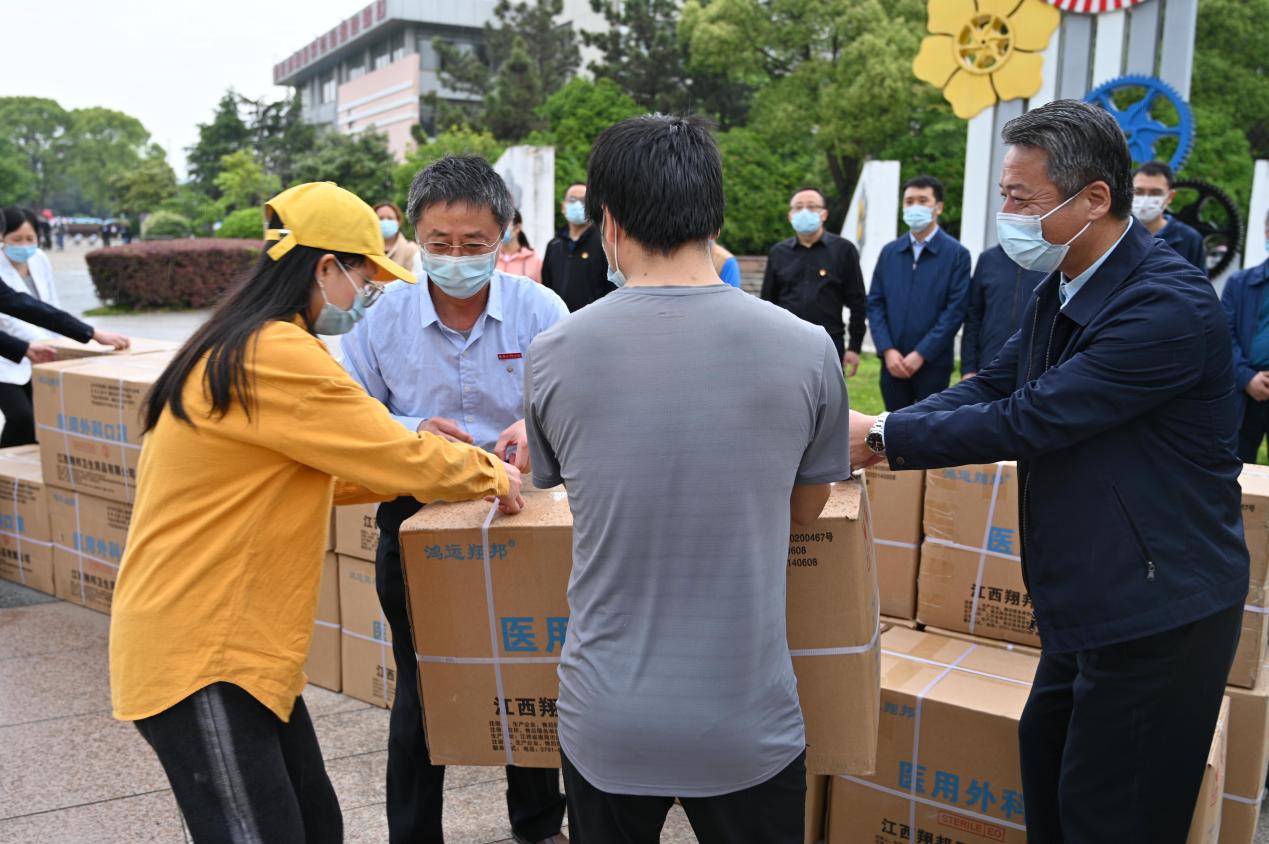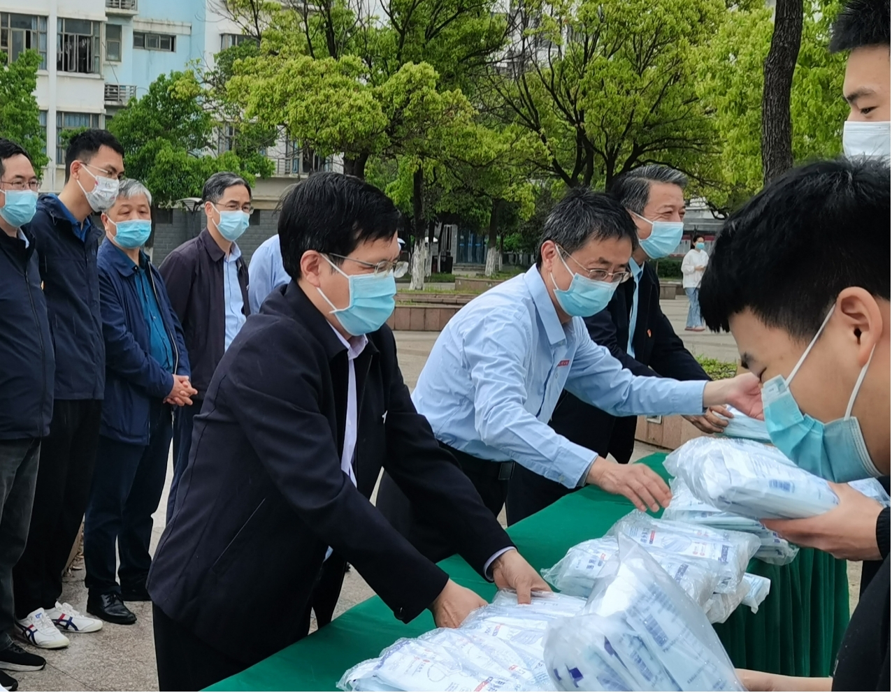 4月22日上午,校党委书记金志农,校长汪胜前,副校长李明、周敏丹一行在惜时广场为各学院学生代表发放免费口罩,急学生所急,想学生所想,用最贴心温暖的方式送上关怀。校疫情防控办、学生工作部(处)、团委、保卫部(处)等相关职能部门及学院负责人参与口罩发放。周敏丹主持发放仪式。