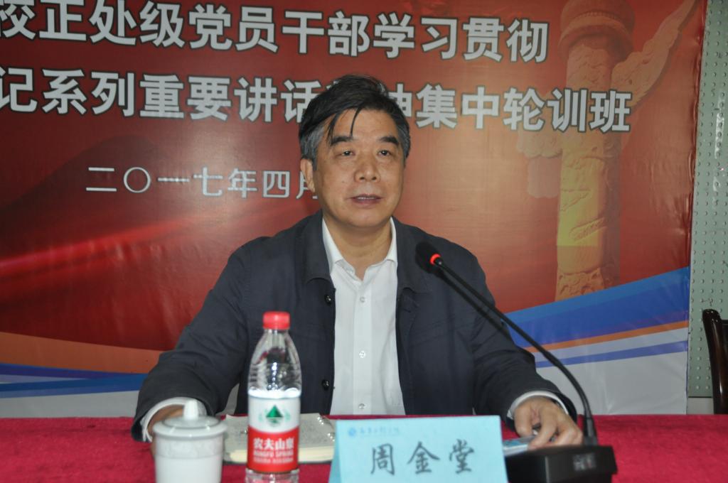 周金堂在动员讲话中强调,参训学员要围绕主题深入学、做政治上的明白人;要突出重点延伸学,做党性合格的共产党人;要联系实际结合学,做实干兴赣的教育人。他希望,全体参训学员以更大的信心、更大的决心、更足的动力、更强的意志,积极投身到高等教育改革发展的火热实践中去,以优异的成绩回报组织和人民群众的期待;积极投身到学校建设水利特色鲜明的高水平应用型工程大学的进程中去,以优异成绩迎接党的十九大胜利召开。