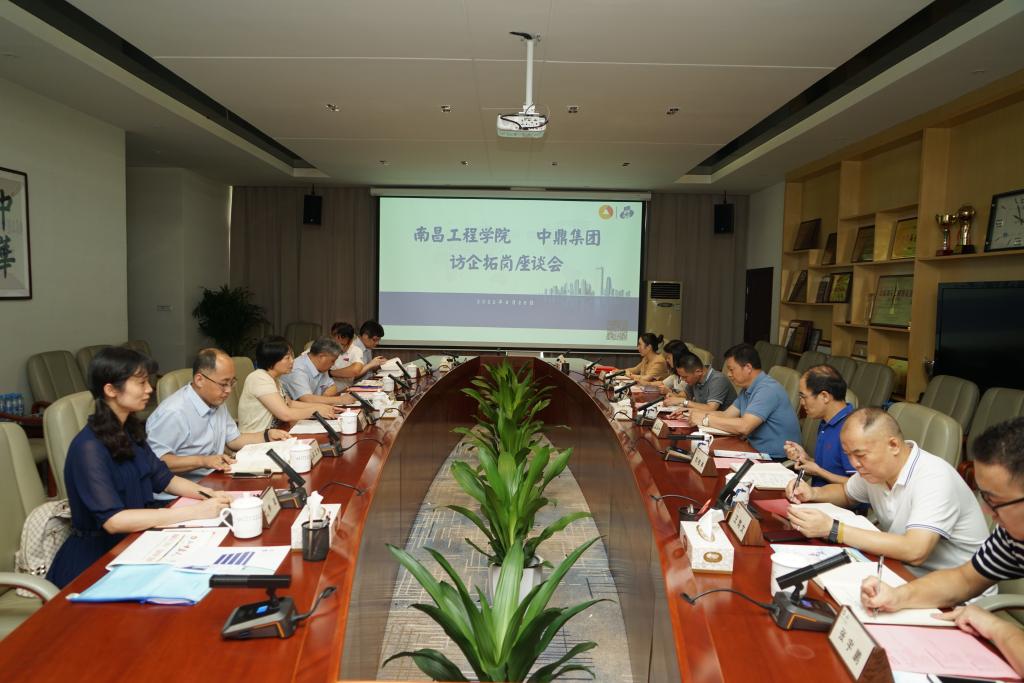 近日,副校长周敏丹率招生就业处、土木与建筑工程学院和外国语学院有关负责人,到中鼎国际建设集团有限责任公司开展访企拓岗促就业专项行动,为毕业生就业基地揭牌并签订校企合作协议。中鼎国际建设集团有限责任公司董事长赵桂生、副总经理姚郭亮等出席活动。