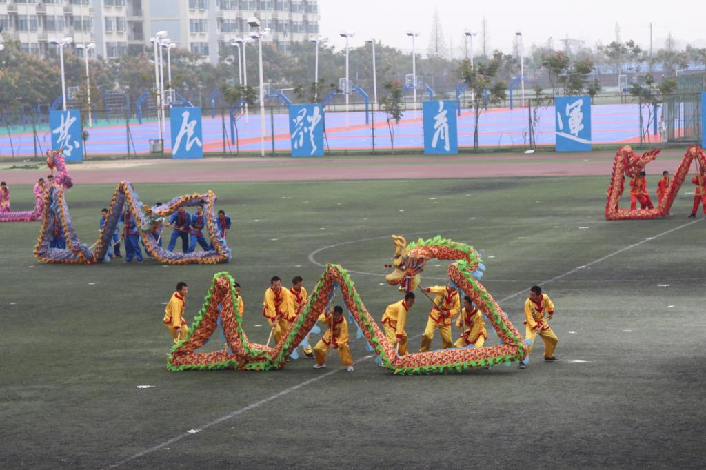 开幕式上还举行了多姿多彩的大型团体操表演。教职工团体操表演《奔跑吧,南工!》中,舞步整齐、热情洋溢,充分展示了教职工热爱生活、蓬勃向上的精神面貌;经济贸易学院带来舞蹈串烧《欢乐颂》,在青春动感的音乐中,舞者配合默契,让人眼前一亮;人文与艺术学院表演的《扇韵秋实》将传统武术和扇舞结合,刚柔并济,武术动作干脆整齐,开合扇面利落有声,令人大饱眼福。最后出场的是由校舞龙舞狮队和人文与艺术学院表演的舞龙节目《御龙出海》,六色舞龙灵活地上下翻飞,队员们技艺娴熟,动作刚劲,引得陈陈掌声。