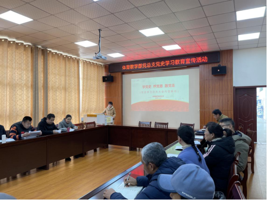 体育教学部党总支组织全体党员和教师开展党史学习宣传活动。党总支负责人结合学习体会,以“学党史 感党恩 跟党走”为题作主题分享,重点阐述了党史学习“为何学、学什么、怎么学”,引导党员和教师以党史学习教育为契机,树立正确党史观,坚持以唯物史观指导学习和工作,坚定“为党育人、为国育才”初心使命。活动中大家畅谈学习体会,纷纷表示,要把学习党史同体育教学工作结合起来,做到“学有所思,学有所悟,学有所得”,践行好体育人的初心与使命。