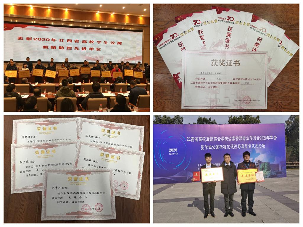 12月17至18日,江西省高校后勤协会学生公寓管理专业委员会2020年年会暨学生公寓标准化建设与高质量发展论坛在景德镇陶瓷大学举行。会议表彰了先进集体、先进个人和优秀摄影作品,我校获2019年江西省高校学生公寓管理先进单位和2020年江西省高校学生公寓疫情防控先进单位;何有兴、刘少虎荣获“全省高校公寓管理先进个人”荣誉称号;赵亚琪、贾晓琳、陈友清荣获“疫情防控先进个人”荣誉称号;我校选送的作品在“庆祝新中国成立70周年”全省高校学生公寓发展成果摄影大赛摄影作品评选活动中获一等奖1项,三等奖1项,优胜奖4项。